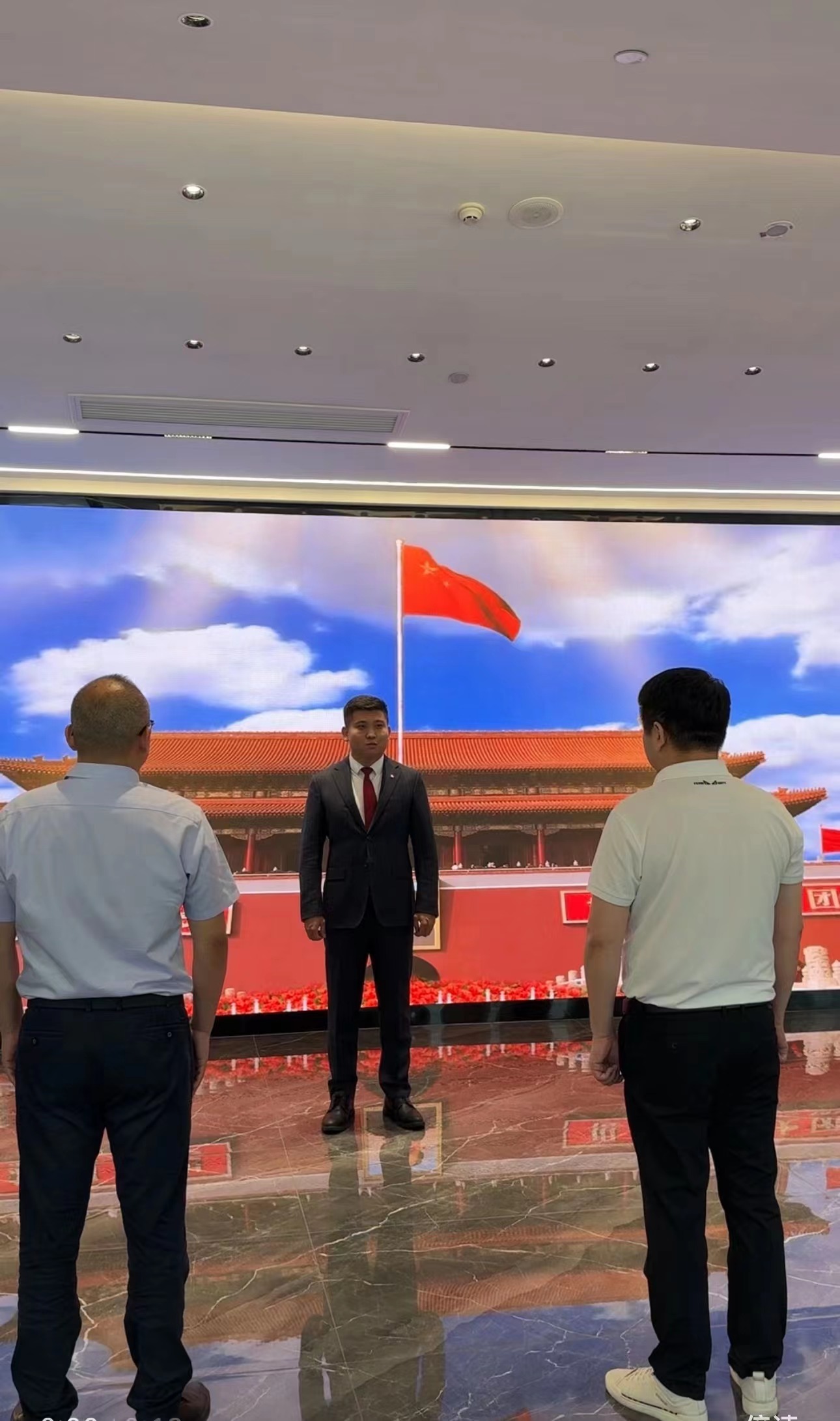 2024年7月15日,蘇州智慧倍增數字科技有限公司的升旗儀式在公司接待大廳隆重舉行。在莊嚴的國歌聲中,鮮艷的五星紅旗冉冉升起,公司高層領導及全體員工整齊列隊、肅立致敬,共同見證了這一莊嚴而神圣的時刻。